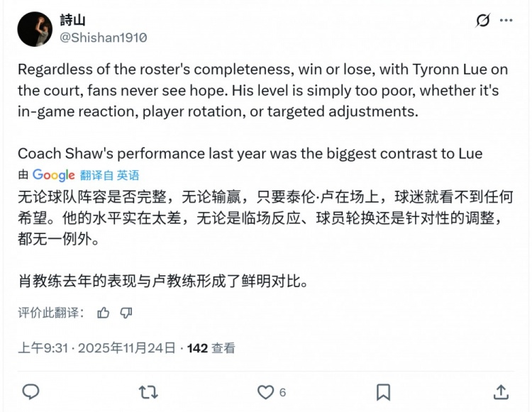 American netizen: There is no hope for Lu Zai&. Brian Shaw completely destroyed him. If the Clippers draw the top pick, they will have to give it to the Thunder.