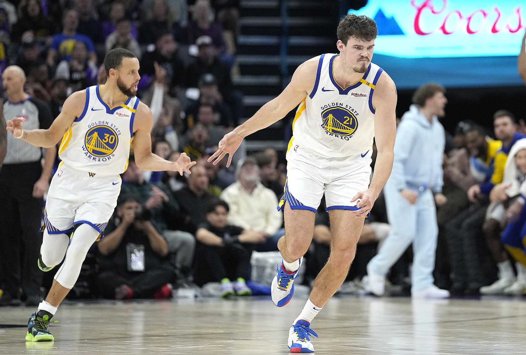 Curry: Of course I hope so. We have a lot of confidence in Podemski - and I'm pretty sure he has a lot of confidence in himself too. It's about playing the right way of basketball, playing with all your strength, and taking decisive shots when it's time to shoot - after all, his shooting ability is really strong; if there is no open space, create opportunities, chase back hard on the defensive end and defend the opponent's offense like tonight. As long as we continue to accumulate game after game and connect these good performances together - we can definitely do it.