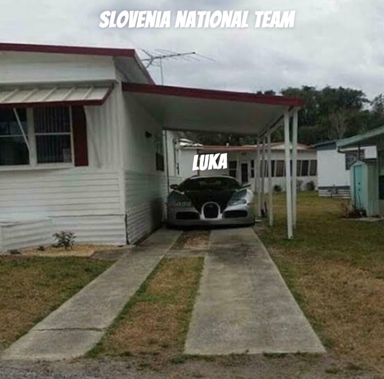 self-media Luka Updates posted a picture to warm up the European Championship. The picture shows a luxury car parked in a dilapidated courtyard. The luxury car is marked with "Luka", while this courtyard is marked with the Slovenian men's basketball team.