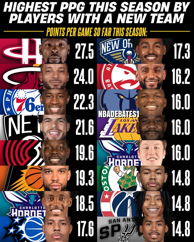 How is it going with your new team? Take a look at the scoring rankings of these newcomers and players who have changed careers