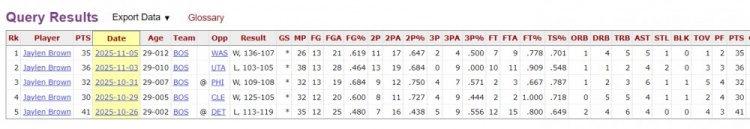 This is the sixth time Jaylen Brown has scored 30+ games this season. He is currently the player with the most 30 games in the Eastern Conference.