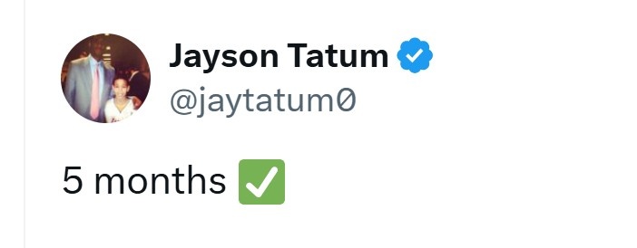 Related News>>>Tatum: I will be injured for 5 months tomorrow. I am recovering very well now.