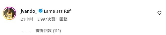 The US media Bleacher Report posted a video of Van Der Biao arguing with the referee. Van Der Biao appeared in the comment area: "Garbage referee!"