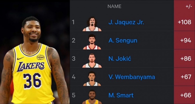 Total plus-minus list so far this season: Huskers 1, Shen Jing 2, Jokic 3, Wenban 4, Smart 5