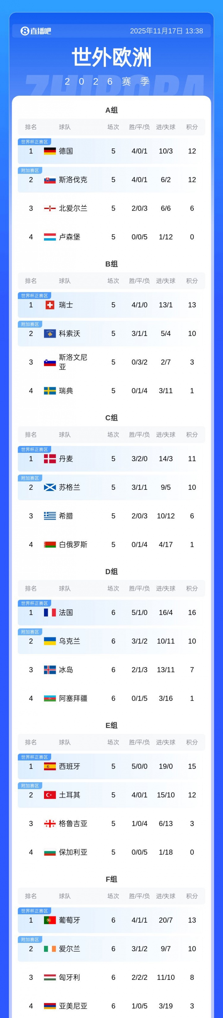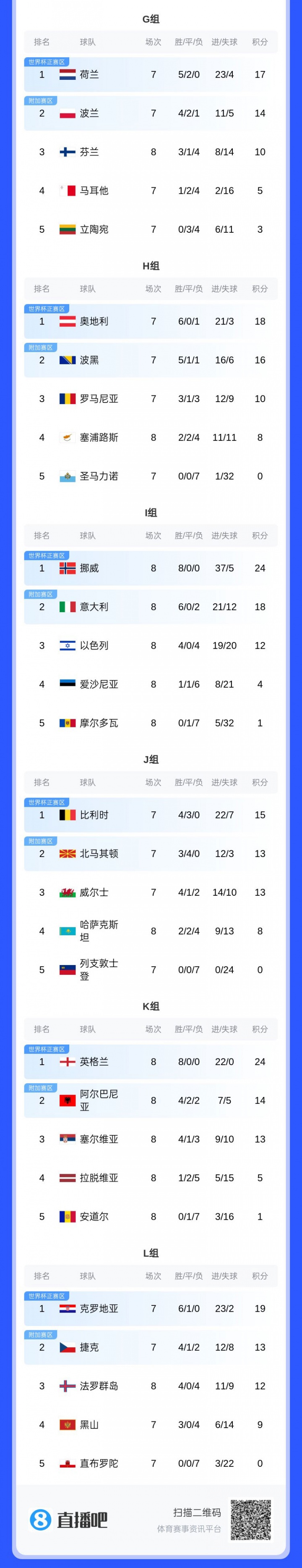 The European qualifying group stage of the World Cup is coming to an end. Among the current 16 direct quotas, England, France, Croatia, Portugal, and Norway have already qualified. Which other teams have a chance to advance? Which teams participate in the play-offs? Which teams have been eliminated? Let’s find out.