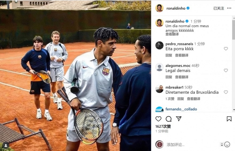 Ronaldinho posted photos of playing tennis with Rijcard, Messi and Roca (assistant coach) during his time at Barcelona, with the caption: "I spent the usual day with my friends, hahaha."