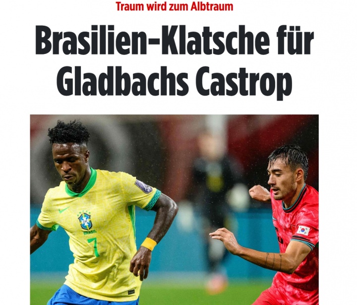 "Bild" wrote under the title "Dream turns into nightmare: Brazil delivers a heavy blow to Borussia Monchengladbach's Castrop": "Monchengladbach midfielder Castrop experienced a scene that many children dream of when they were playing street football or club youth training: representing the national team in the game against Brazil!