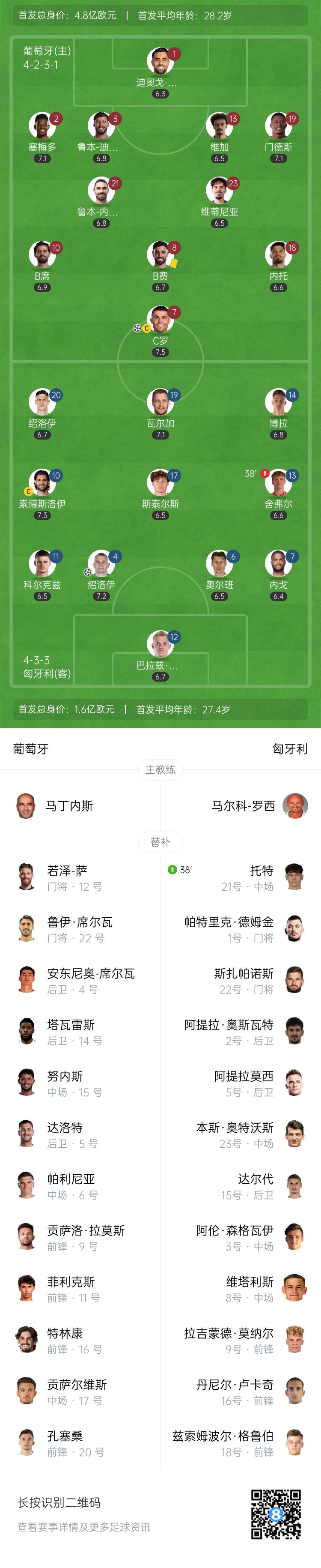 In the fourth round of Group F of the European Group Stage of the World Cup Qualifiers, Portugal faced Hungary at home at the Alvalade Stadium. In the first half, Shaloi took the lead. Cristiano Ronaldo scored his 41st goal in the World Cup preliminaries and became the top scorer in history. After halftime, Portugal 2-1 Hungary.