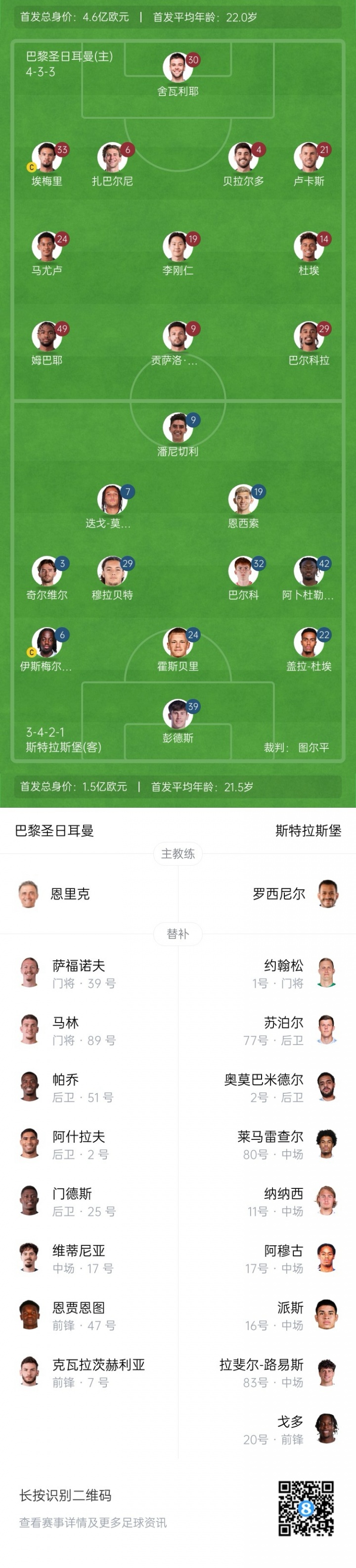In the 8th round of Ligue 1, Paris Saint-Germain faced Strasbourg at home. The starting lineup was announced before the game. In this game, Paris rotated the lineup, with Rams, Barkola, Li Gangren, and Douai playing, while Vitinha, Ashraf, and Kvaratschlija came on the bench.