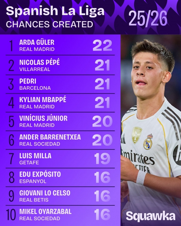 A few days ago, Squawka counted the number of opportunities created in La Liga this season, with Guerre ranked first 22 times.