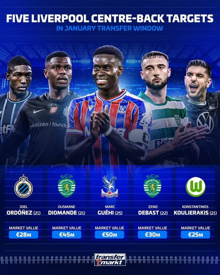 Liverpool's performance this season has started well but has gone downhill. They are expected to strengthen their central defender position in the winter window. "Transfer Market" also listed their five potential targets and their transfer prices: